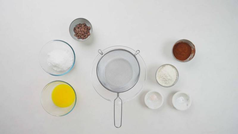 Mehl, Kakaopulver und Natron zusammen in die Eimischung sieben. Zu einem glatten Teig verrühren.