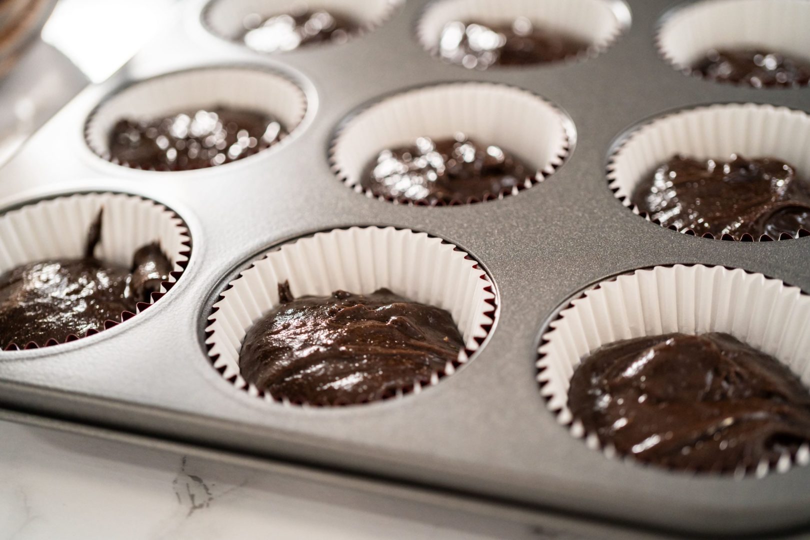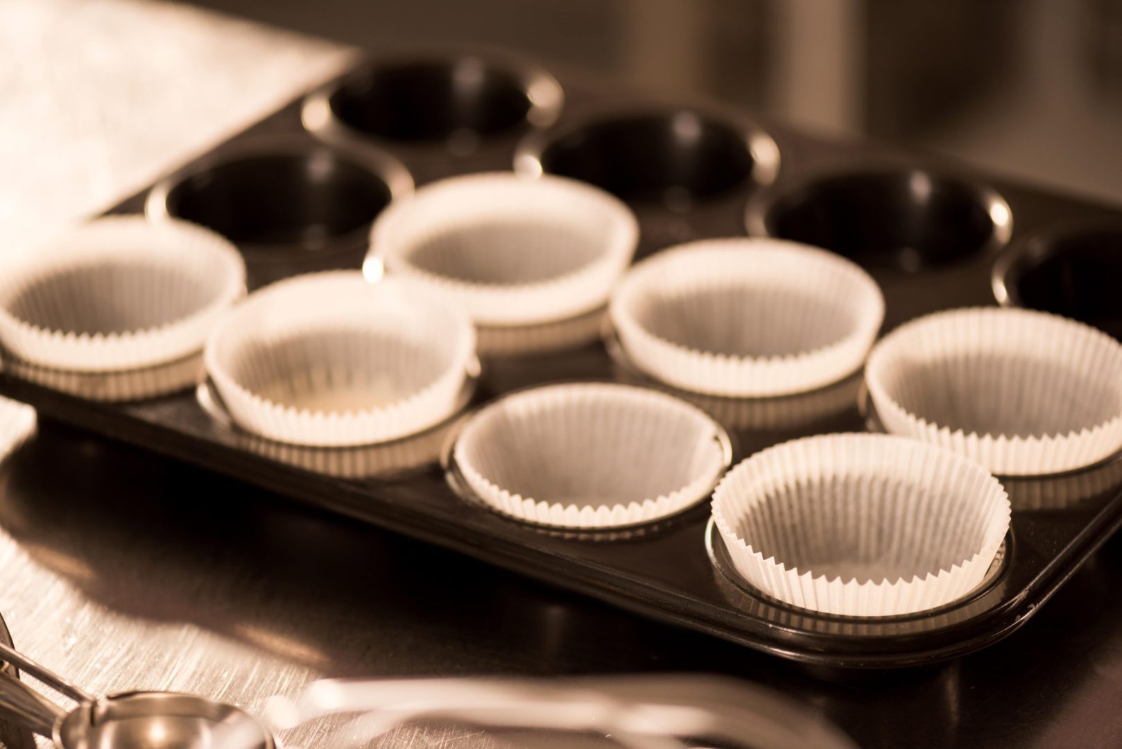 Plaats 12 grote muffinvormpjes in een cupcakeblik.