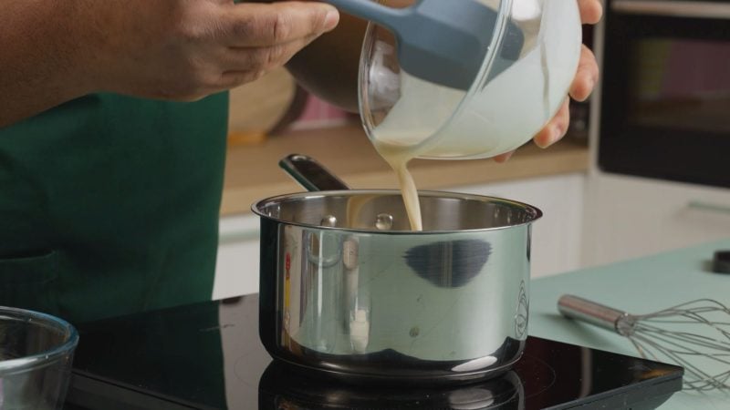 Haal van het vuur, roer de vanille erdoor en laat iets afkoelen.