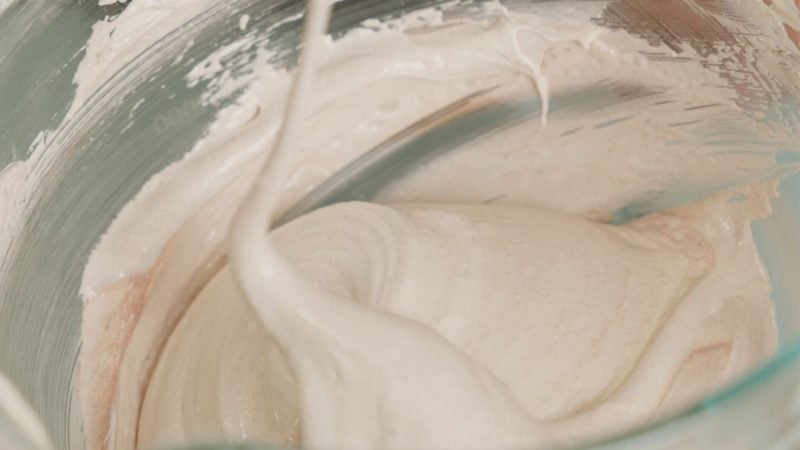 Voeg in een aparte kom de dooiers toe en giet geleidelijk het eiwit erbij en vouw voorzichtig.