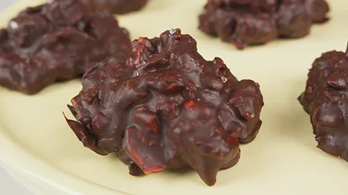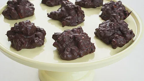Line a baking tray with parchment paper. Scoop out portions of the chocolate mixture and shape them into rough rock-like shapes. Place them on the prepared baking tray.