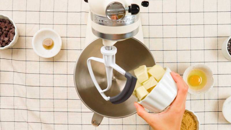 Whisk together butter, sugar, vanilla, and egg in a mixing bowl until well combined.