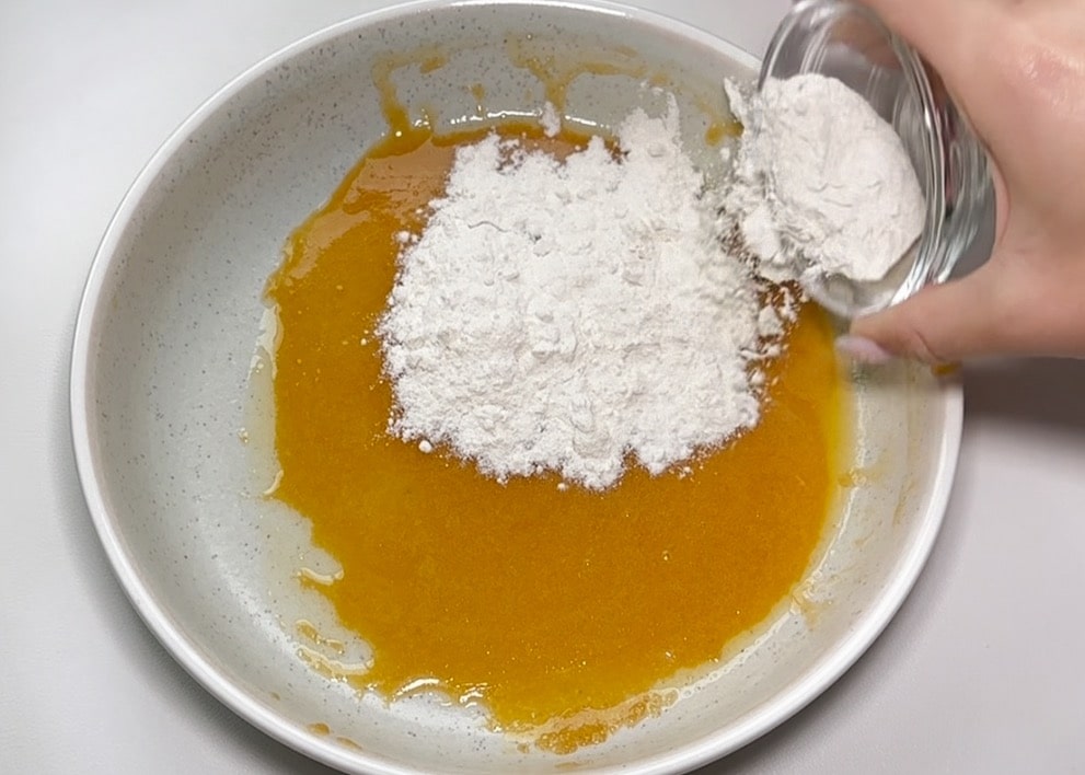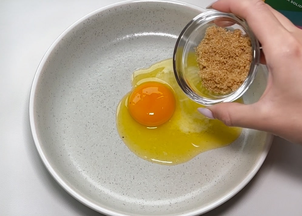 In a microwave-safe small cup, mix the melted butter and sugar until well combined. Add the egg yolk and mix thoroughly.