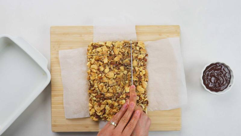 Once the cookie mixture is set, remove it from the refrigerator and cut it into equal pieces.
