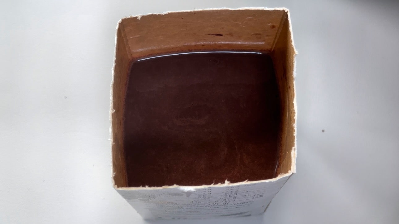 Remove the saucepan from heat. Pour the chocolate jelly mixture into empty milk cups or molds of your choice. Fill them to your desired level.