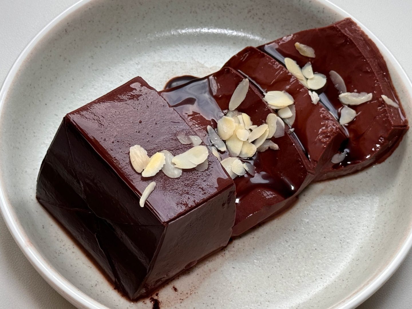 A guilt-free, light dessert with a jelly-like texture. Could use a richer chocolate flavor.
